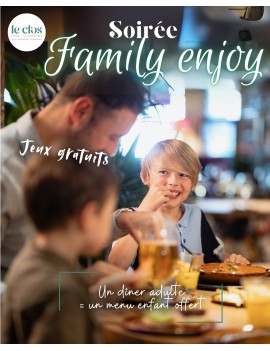 Soirée Family Enjoy, 1 dîner adulte = 1 menu enfant MAISON offert pour les moins de 12 ans .