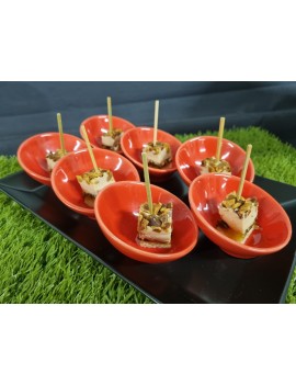 Canapé : Goutte de Foie Gras sur fondant miel et quatre épices (5, 6, 7, 11)